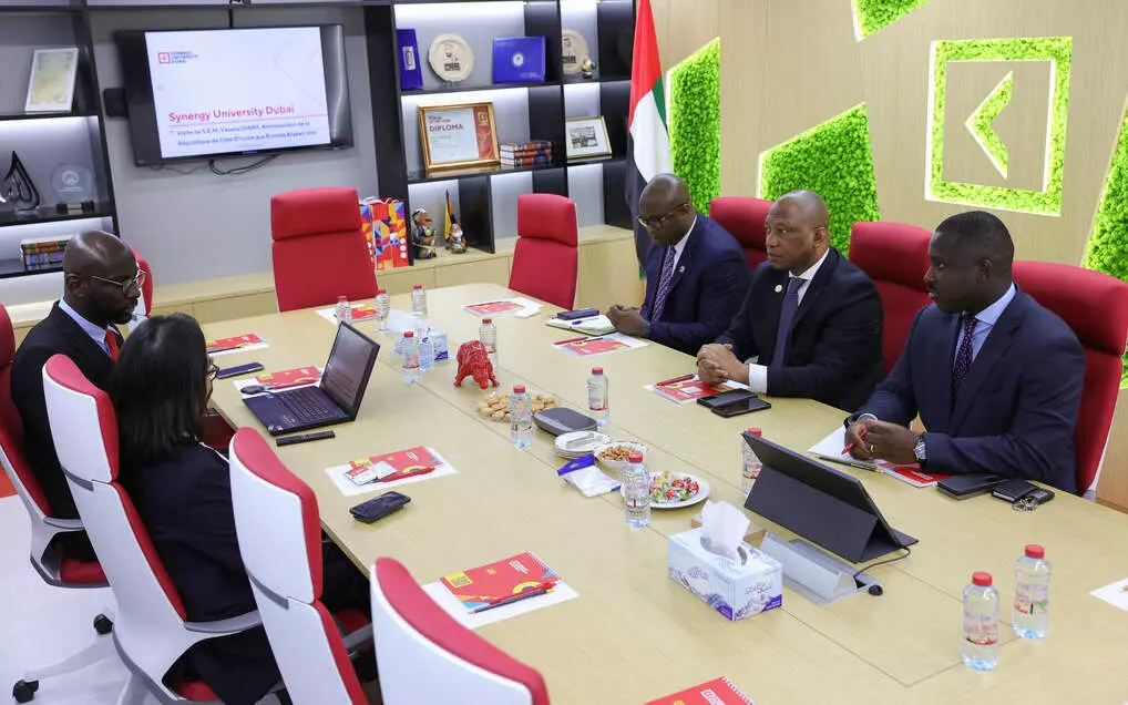 Делегация из Республики Кот-д’Ивуар во главе с послом страны в ОАЭ Вакаба Диаби посетила кампус «Синергии» в Дубае. В состав делегации также вошли советник по экономическим и торговым вопросам посольства Ибрахима Фангори Конэ и глава отдела по культурным и церемониальным вопросам Глан Стефан.