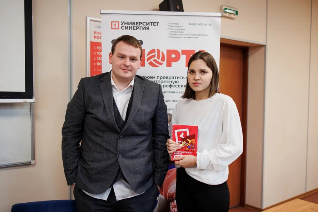 Автором лучшего вопроса стала первокурсница Алина Шадрина, обучающаяся по профилю «Тренерская деятельность в спорте». Она получила в подарок брендированный блокнот «Синергии».