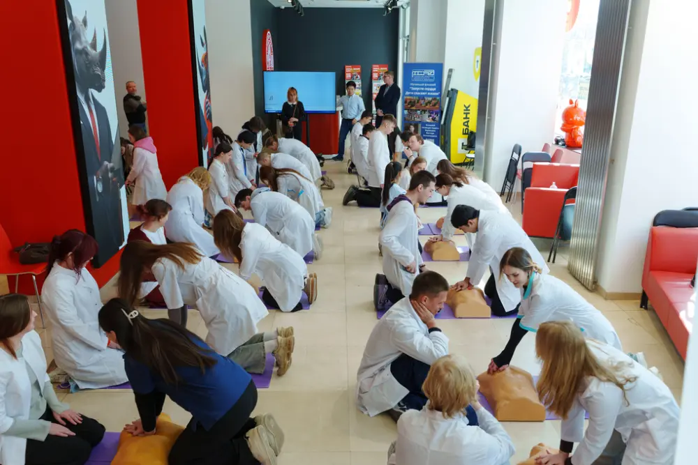 Участники изучили алгоритм действий при остановке кровообращения, отработали сердечно-легочную реанимацию (СЛР) и закрепили знания с помощью настольной игры «Решающая минута».