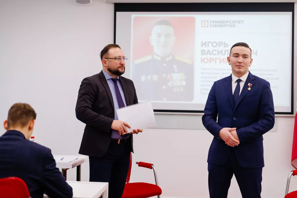 В Университете «Синергия» состоялась встреча студентов с Героем России, кавалером ордена Мужества и двух медалей «За отвагу», ветераном СВО, директором Департамента государственной политики в сфере воспитания Министерства просвещения Игорем Юргиным. Он поделился личным опытом преодоления трудностей и рассказал о важности осознанного выбора жизненного пути.
