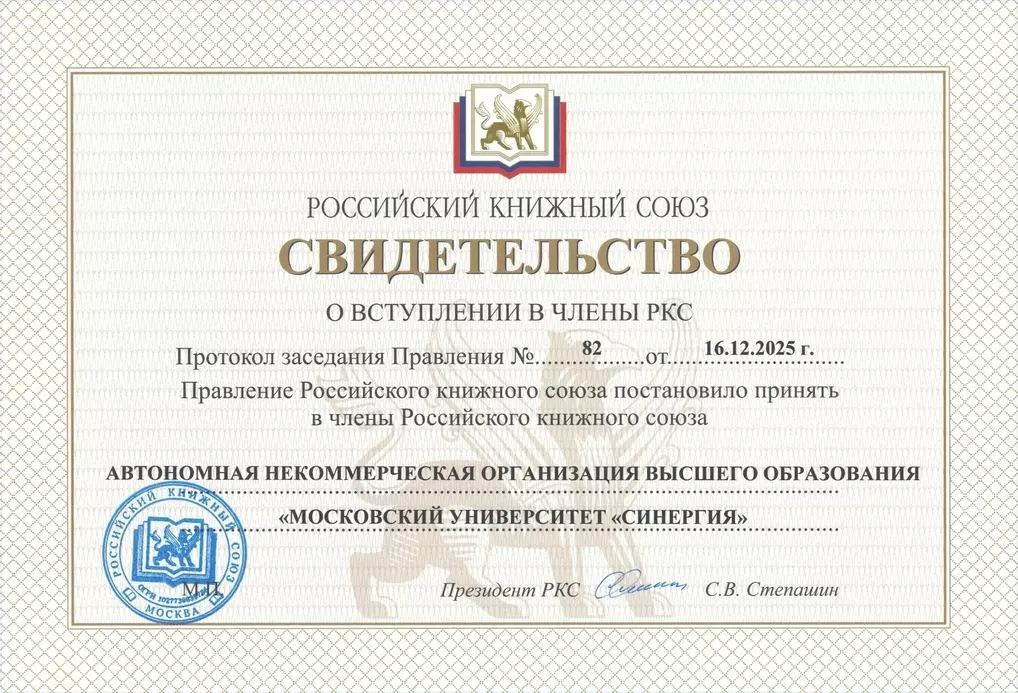 Университет «Синергия» стал членом Российского книжного союза (РКС). Об этом на заседании правления РКС сообщил управляющий вице-президент организации Леонид Палько.