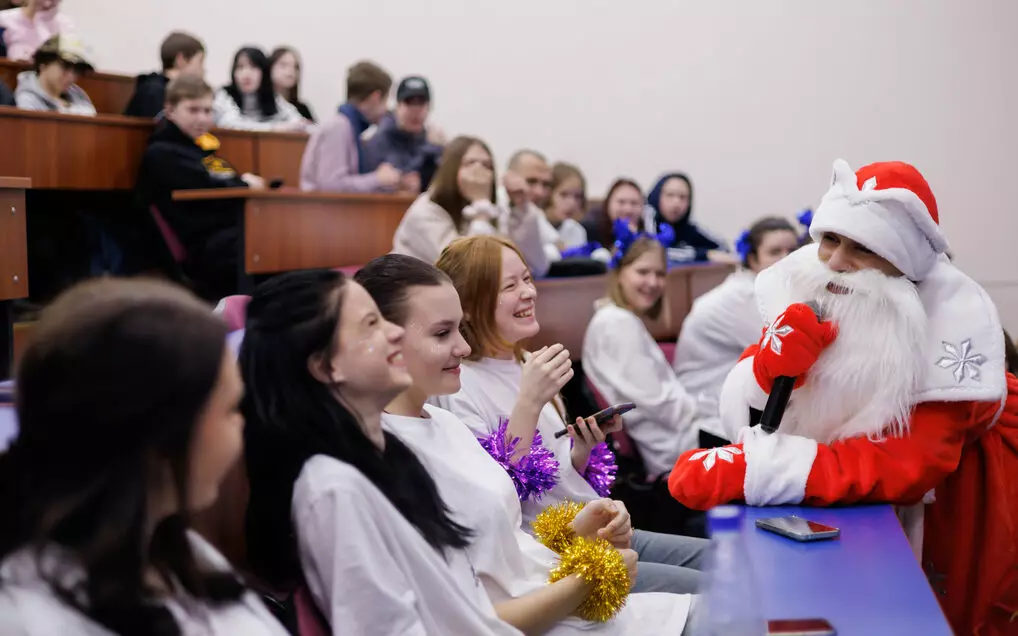 Активисты-первокурсники подготовили для гостей насыщенную программу: музыкальные номера, сценки и пародии на актуальные события года, танцевальные выступления, конкурсы, новогодние сюрпризы и подарки.
