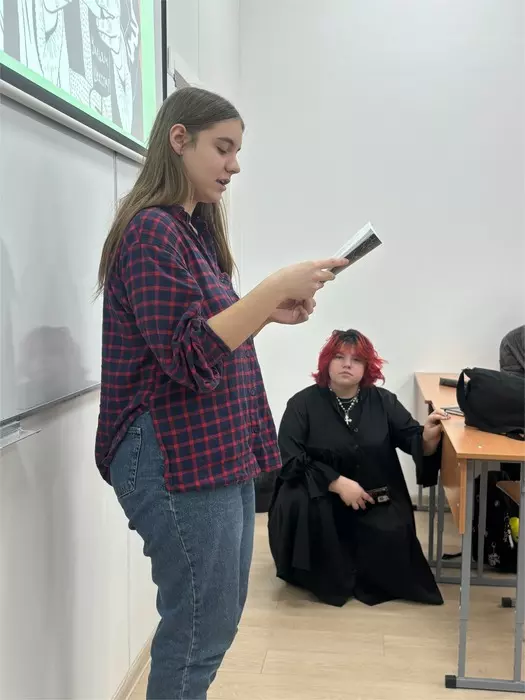 Студенты колледжа направления «Анимация» прочли стихотворения собственного сочинения, прозу, фанфики, представили идеи своих будущих произведений. Так, Надежда Беличенко прочла свои стихи, Ольга Дроздова представила главу из своего романа. Первокурсницы Алена Паладий, Таисия Белоногова, Ульяна Дубова познакомили членов клуба с рассказами и стихотворениями собственного сочинения.