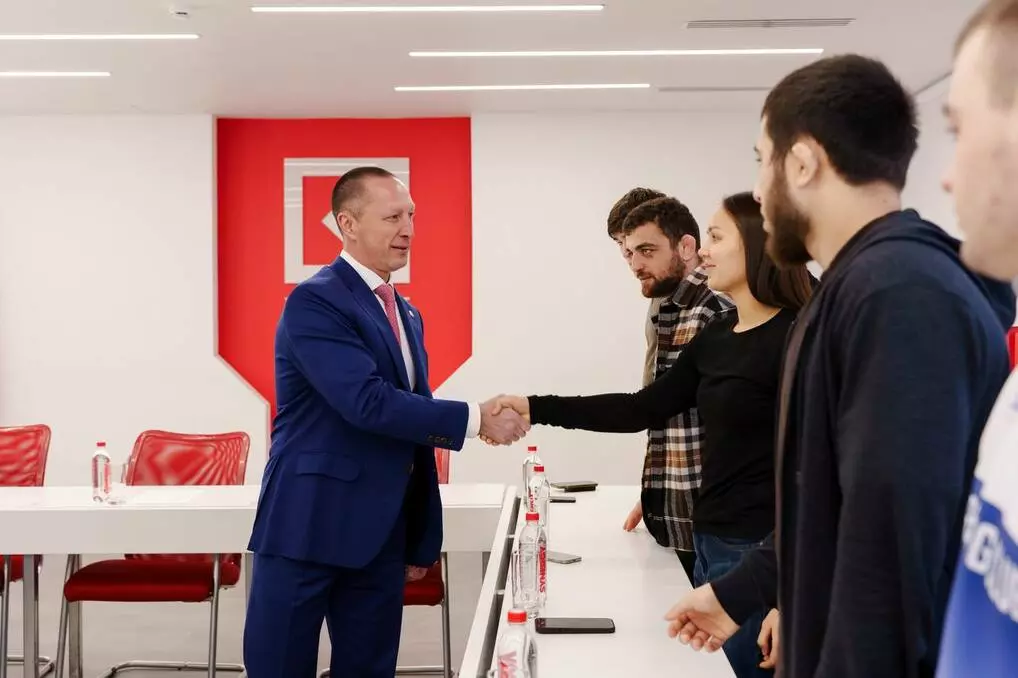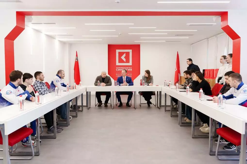 В Москве состоялась встреча президента Корпорации «Синергия» Вадима Лобова и президента Национальной студенческой лиги спортивной борьбы (НСЛСБ) Мурата Остаева с борцами команды Университета «Синергия».