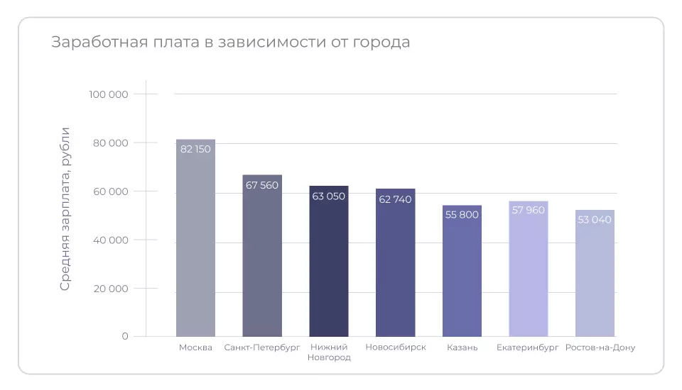 По данным сервиса «Город Работ» средняя зарплата фармацевта в России в 2025 году составляет 61 700 руб. Статистика по городам такая: