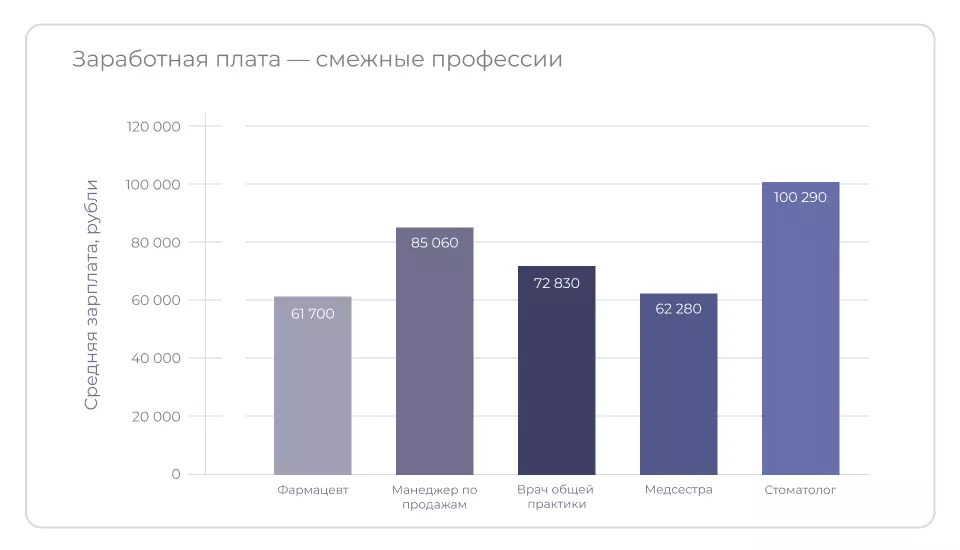 Представляем актуальную статистику по зарплатам фармацевтов и других работников в сфере медицины и продаж, в том числе медсестёр и стоматологов: