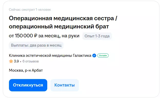 Опытные операционные медсёстры в частных московских клиниках могут получать больше 150 000 руб.