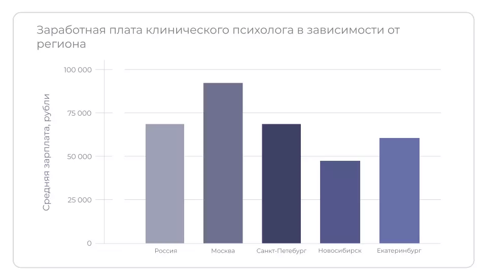 В крупных городах, где высокая конкуренция и востребованность в кадрах, клинические психологи зарабатывают значительно больше, чем в провинциальных.