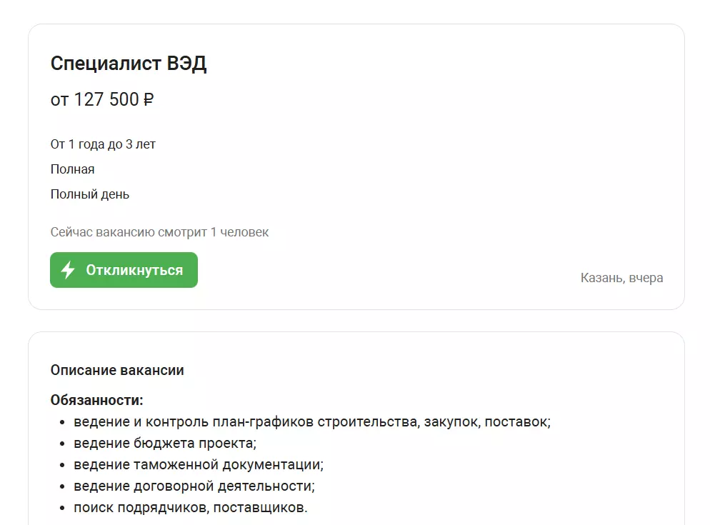 Менеджеры по ВЭД востребованы в торговых и производственных компаниях, логистических операторах, дистрибьюторах, экспортно-импортных холдингах. Такие специалисты работают в крупных корпорациях и международных брендах, связанных с FMCG, промышленностью, фармацевтикой, техникой и сырьевыми рынками, а также в компаниях, развивающих экспорт или закупки за рубежом.