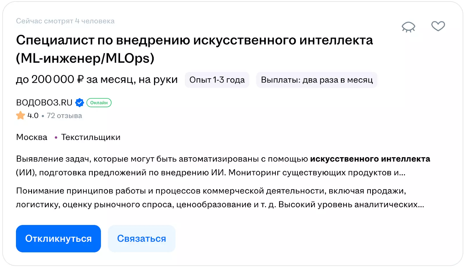 Инженеры ИИ играют критически важную роль в цифровой трансформации всех отраслей: от медицины до логистики.