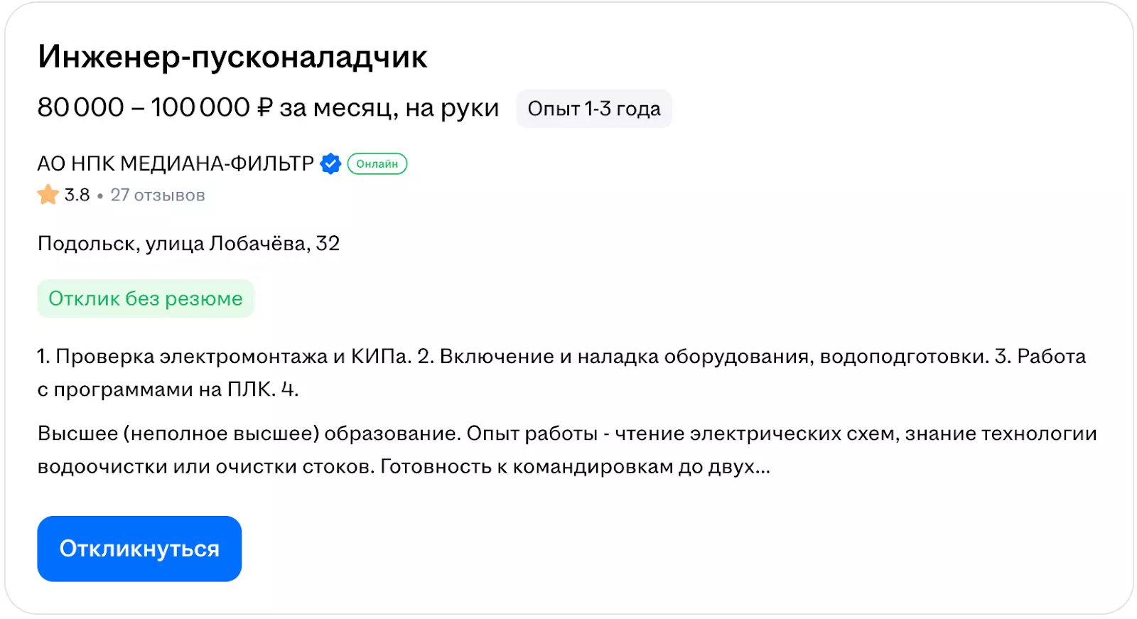 - Готовность к ручному труду и командировкам (пусконаладка часто происходит прямо на объекте заказчика).