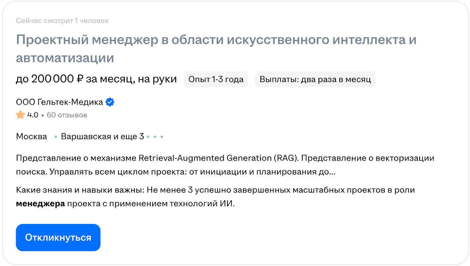 - Готовность к частым и длительным командировкам (90% работы — на объектах по всей стране/миру).