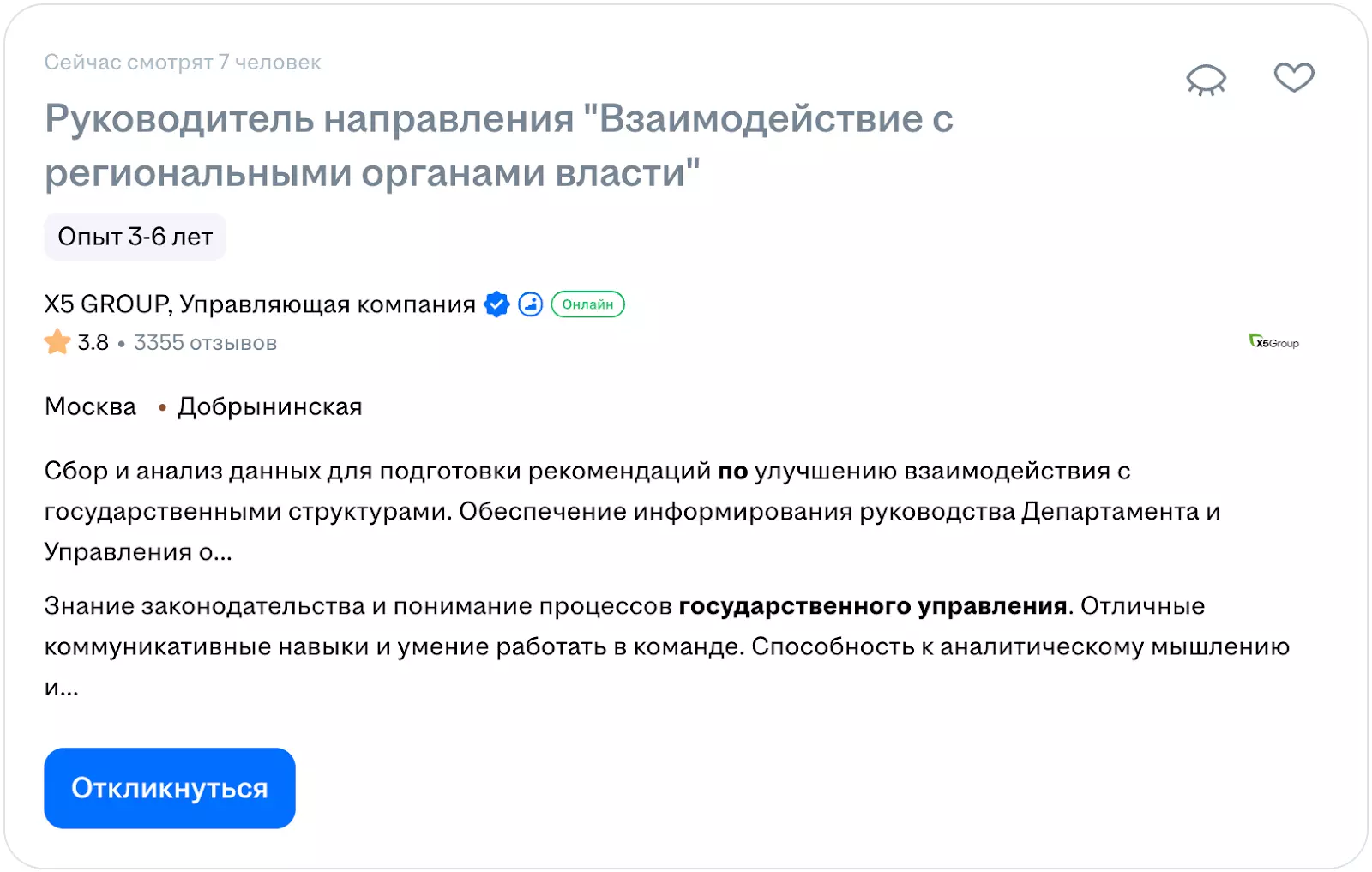 - Госкорпорации и компании с государственным участием: «Росатом», «Роскосмос», «Ростех», крупные банки с госучастием («СберБанк», «ВТБ») — в блоках по взаимодействию с государством, корпоративному управлению, GR (Government Relations).