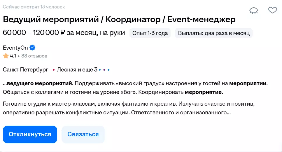 - Сложности с чёткими границами работы. Общение не всегда можно уместить в рамки стандартного восьмичасового дня. Подготовка к мероприятию, ответ клиенту в нерабочее время, «горящие» задачи — всё это часто размывает границу между работой и личной жизнью. Профессия может потребовать постоянной включённости.