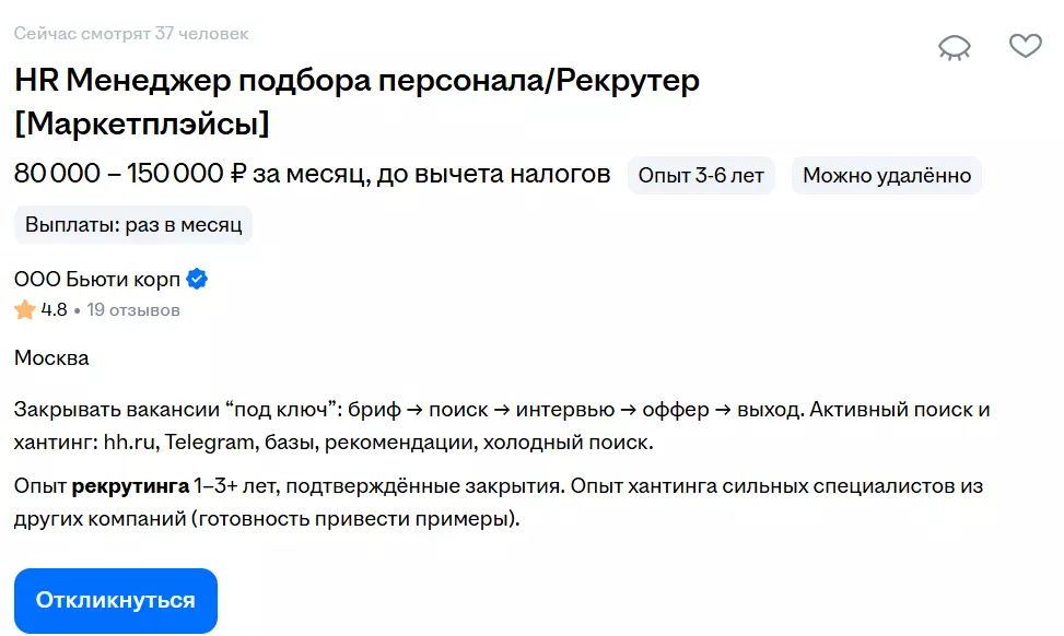 - Искусство переговоров и убеждения: умение «продать» вакансию перспективному кандидату, аргументированно отстаивать предложение по зарплате, вести диалог как с соискателем, так и с руководителем.