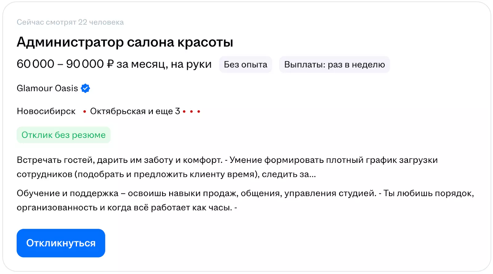- Высокий уровень многозадачности: способность одновременно отвечать на телефонный звонок, обрабатывать запрос гостя на стойке и координировать работу сотрудников без потери качества.