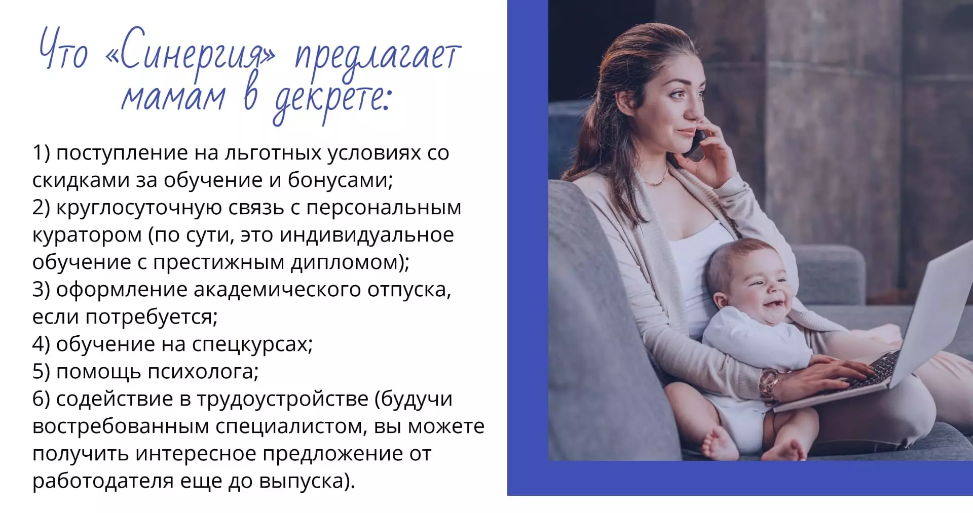 Специальные условия для мам в декрете в университете «Синергии»