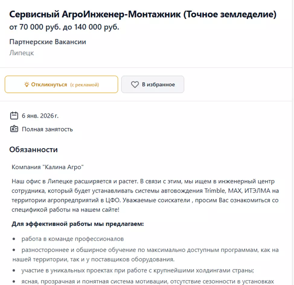 - Уровень дохода зависит от компании. В агрохолдингах и у официальных дилеров современной техники платят больше, чем в небольших фермерских хозяйствах.