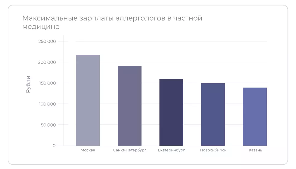 Частные клиники предлагают более высокую базовую ставку. Зарплата аллерголога формируется из оклада и процента от стоимости консультация и терапии. Чтобы больше зарабатывать, многие врачи совмещают работу в нескольких клиниках.