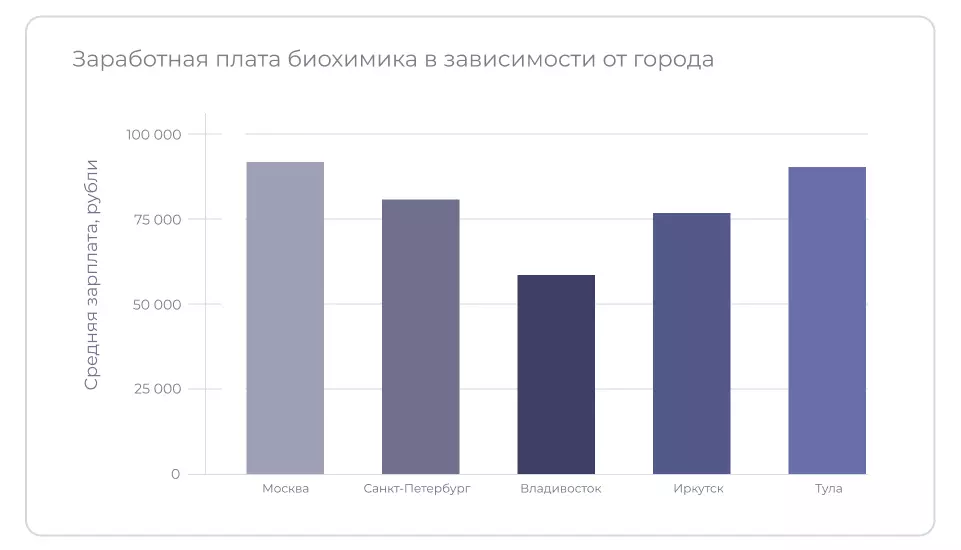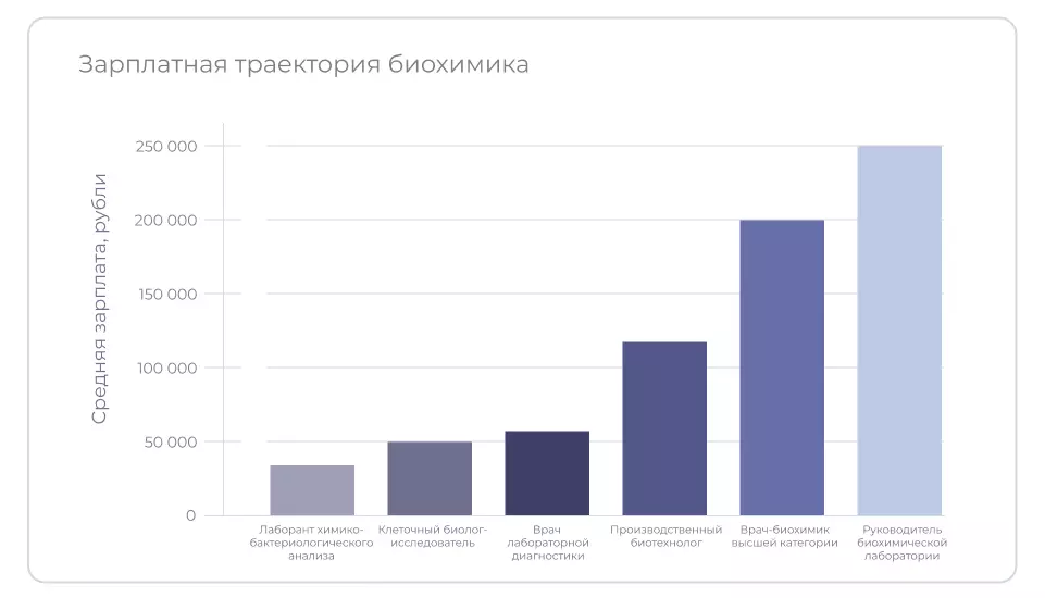 Доход биохимика зависит от места работы, опыта, специализации и квалификации. Начинающие лаборанты зарабатывают от 35 000 рублей, руководители лабораторных подразделений и научные сотрудники с учёной степенью — до 250 000 рублей.