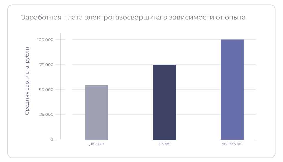 Заработок электрогазосварщика зависит от трудового опыта, разряда, направления деятельности и региона трудоустройства. Начинающие специалисты (до 2 лет опыта) в крупных городах в среднем получают от 40 до 70 тыс. руб. в месяц. Сварщики среднего уровня (2–5 лет опыта) зарабатывают 60–90 тыс. руб., а доходы профессионалов со стажем более 5 лет варьируются в диапазоне 80–120 тыс. руб. в месяц. В небольших регионах зарплаты сварщиков значительно меньше: опытный специалист зарабатывает в пределах 60–100 тыс. руб. в месяц.