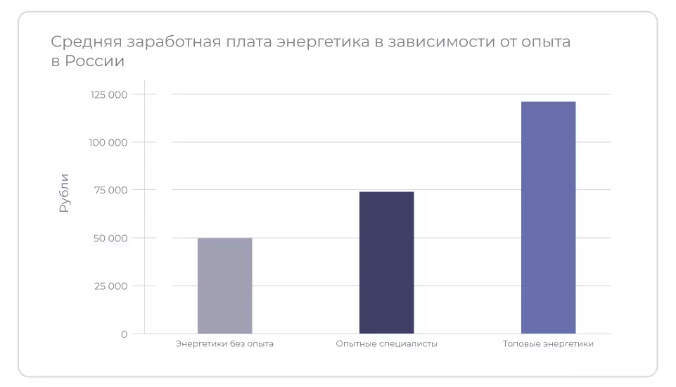 Зарплата энергетика зависит от региона, уровня образования, опыта работы, специализации и масштаба компании.