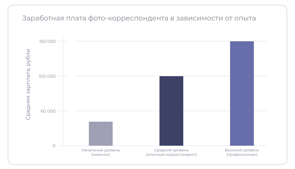 Карьерный рост в профессии зависит от уровня навыков и самостоятельности. У некоторых путь от новичка до штатного фотокорреспондента занимает год, другим нужно больше времени. Темпы роста определяются качеством работ, скоростью реагирования и умением работать в любой среде.