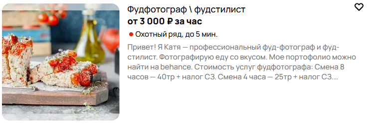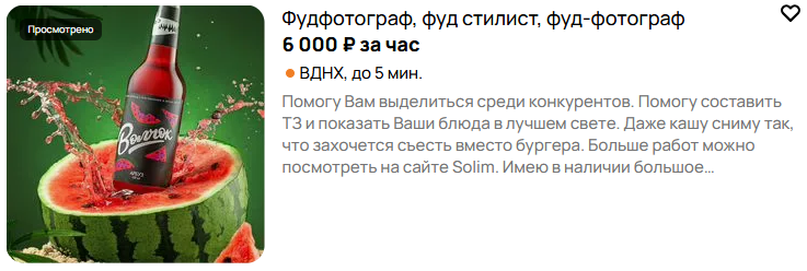 - интереса к гастрономии, фотографии или рекламе;