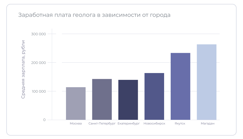 Зарплаты выше в регионах, где есть потенциал развития горного дела, энергетики и нефтегазовой промышленности. Доход зависит от типа занятости: офис, полевая работа или комбинированный режим. Многие специалисты работают вахтовым методом и получают больше коллег.