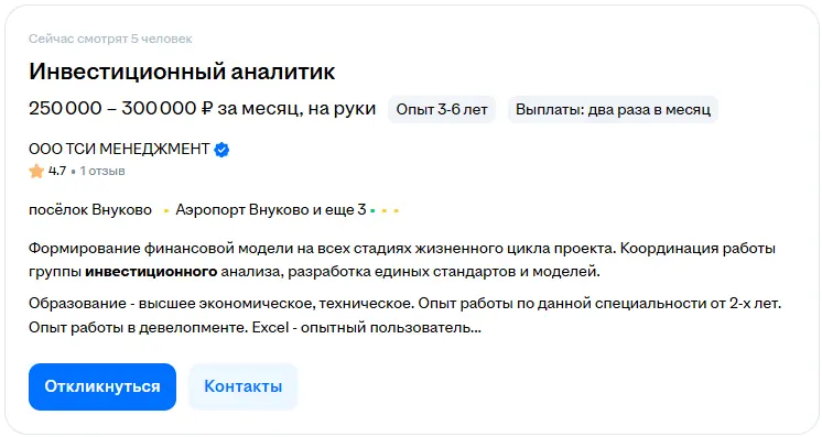 - Коммуникация и презентация. Аналитик выступает перед инвестиционным комитетом и обосновывает свои выводы. Он переводит сложные расчёты в понятный кейс: объясняет партнёрам фонда, на чём именно зарабатывает бизнес и почему в него стоит вложиться прямо сейчас.
