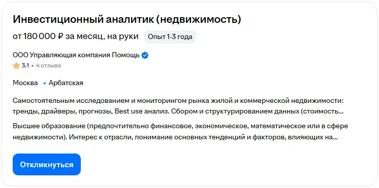 - Инвестиционные фонды (Baring Vostok, «Фонд Прямых Инвестиций», Mendeleev Venture Capital). Аналитик ищет объекты для вложения средств.