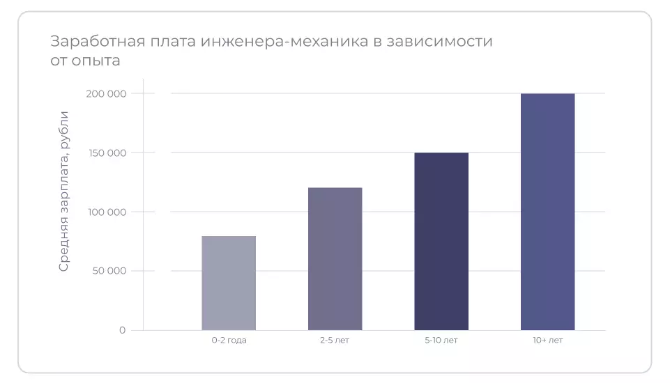 Молодые специалисты с высшим образованием начинают профессиональный путь с выполнения простых задач: создают чертежи, ведут техническую документацию и разрабатывают механические системы под руководством опытных коллег, участвуют в сборе информации для проектов и наладке оборудования. По мере ознакомления с условиями работы и накопления практического опыта, сотрудникам поручают более сложные задания. Чтобы сделать карьеру и стать инженером старшего звена, в среднем требуется около 10 лет работы.