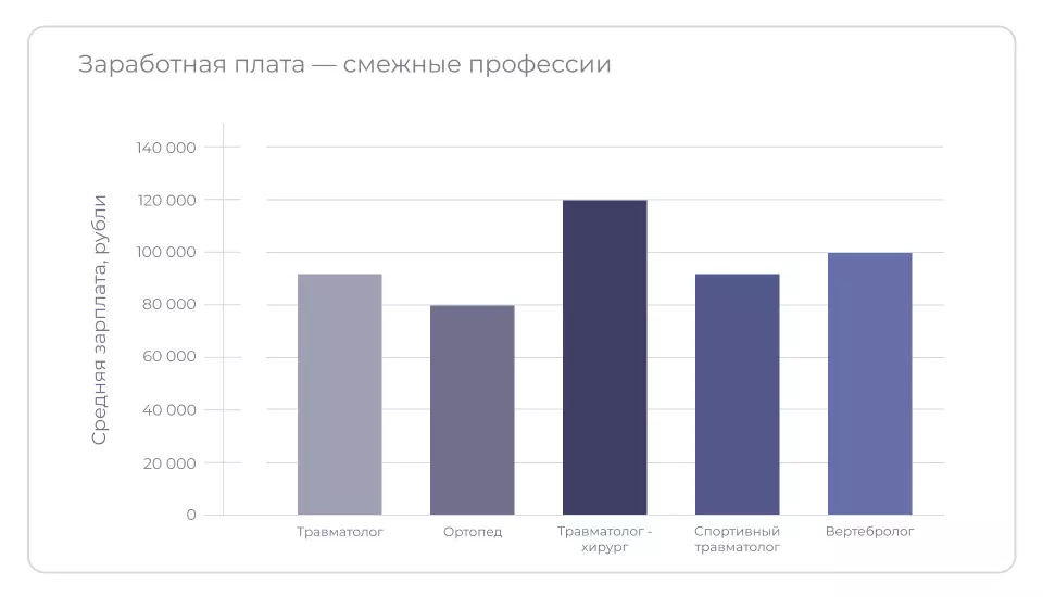 Уровень дохода врача-травматолога зависит не только от его опыта и стажа, но и от места работы. В крупных городах специалисты получают больше, чем в регионах, а в частных клиниках — больше, чем в государственных медучреждениях. По состоянию на март 2025 года, на портале hh.ru представлено 2300 вакансий для травматологов по всей России.