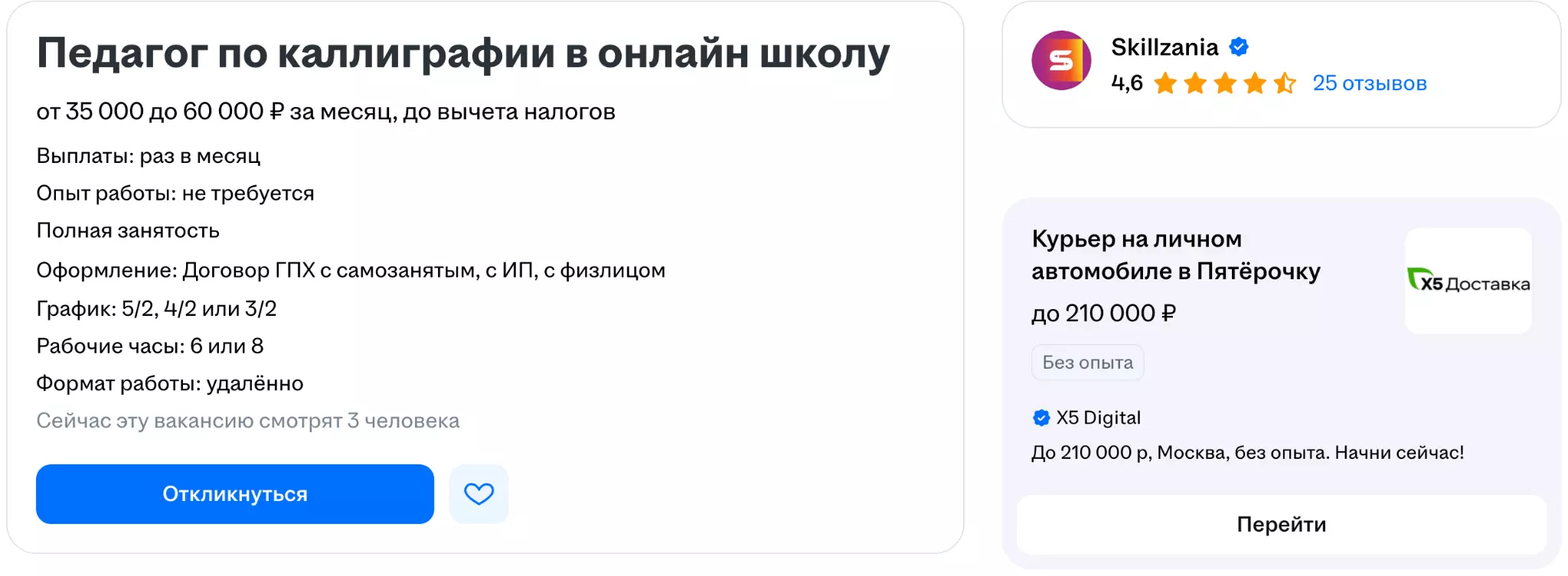 Для примера рассмотрим несколько актуальных вакансий с популярных сайтов: