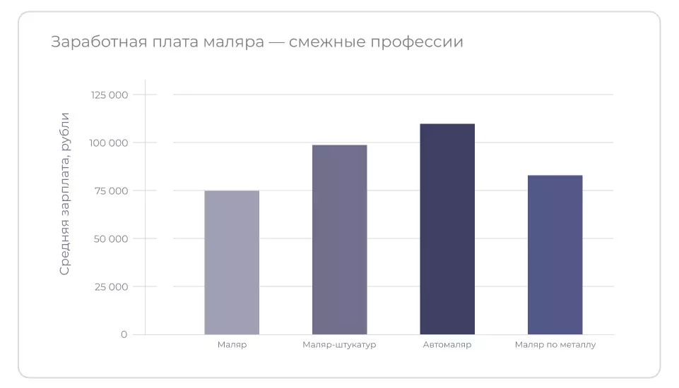 По данным сайта Dream Job, средняя зарплата маляра в России в 2025 году составляет 75 тыс. руб.