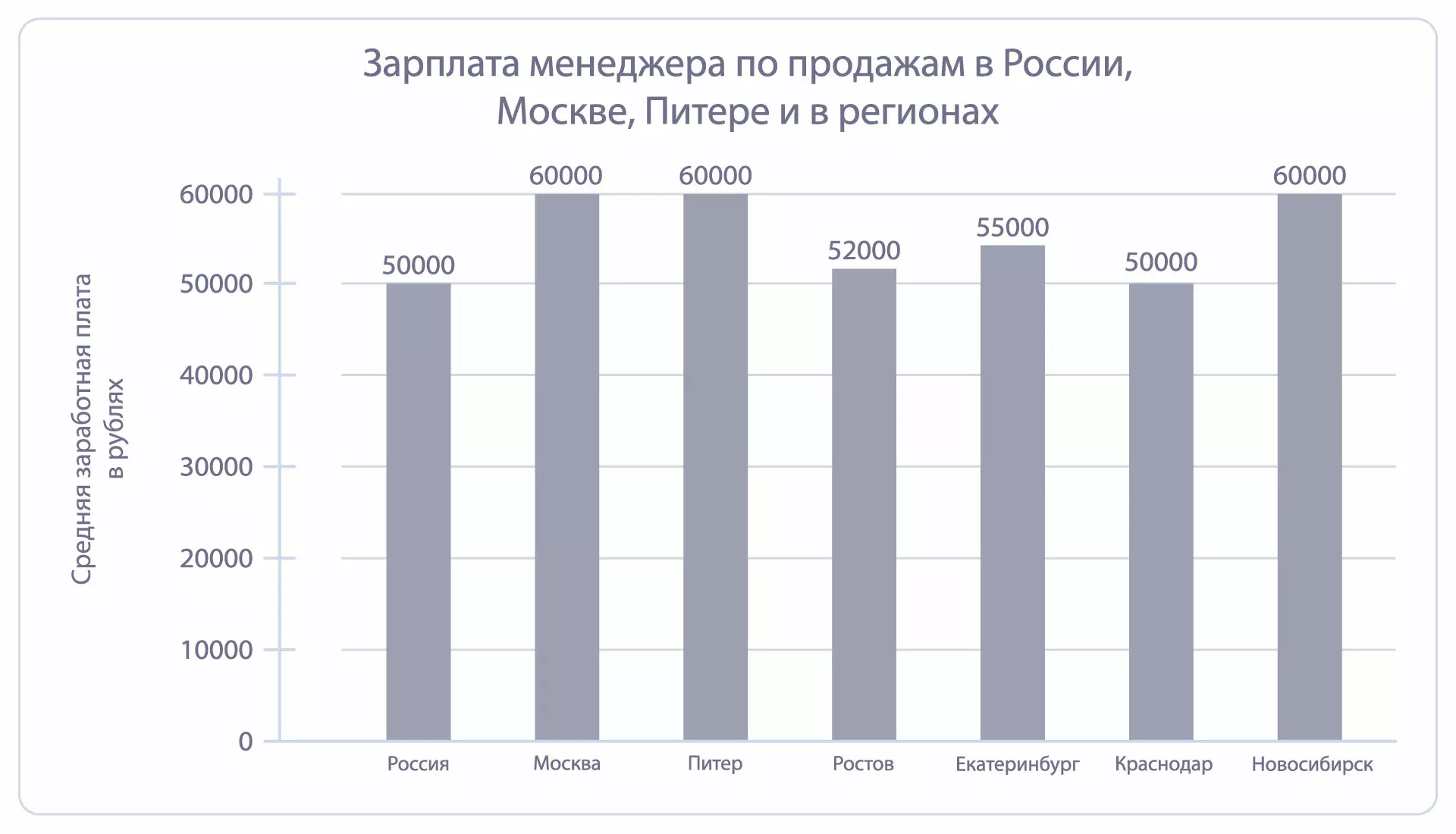 Средняя заработная плата менеджера по продажам в 2024 году в целом по стране и по городам показана на графике: