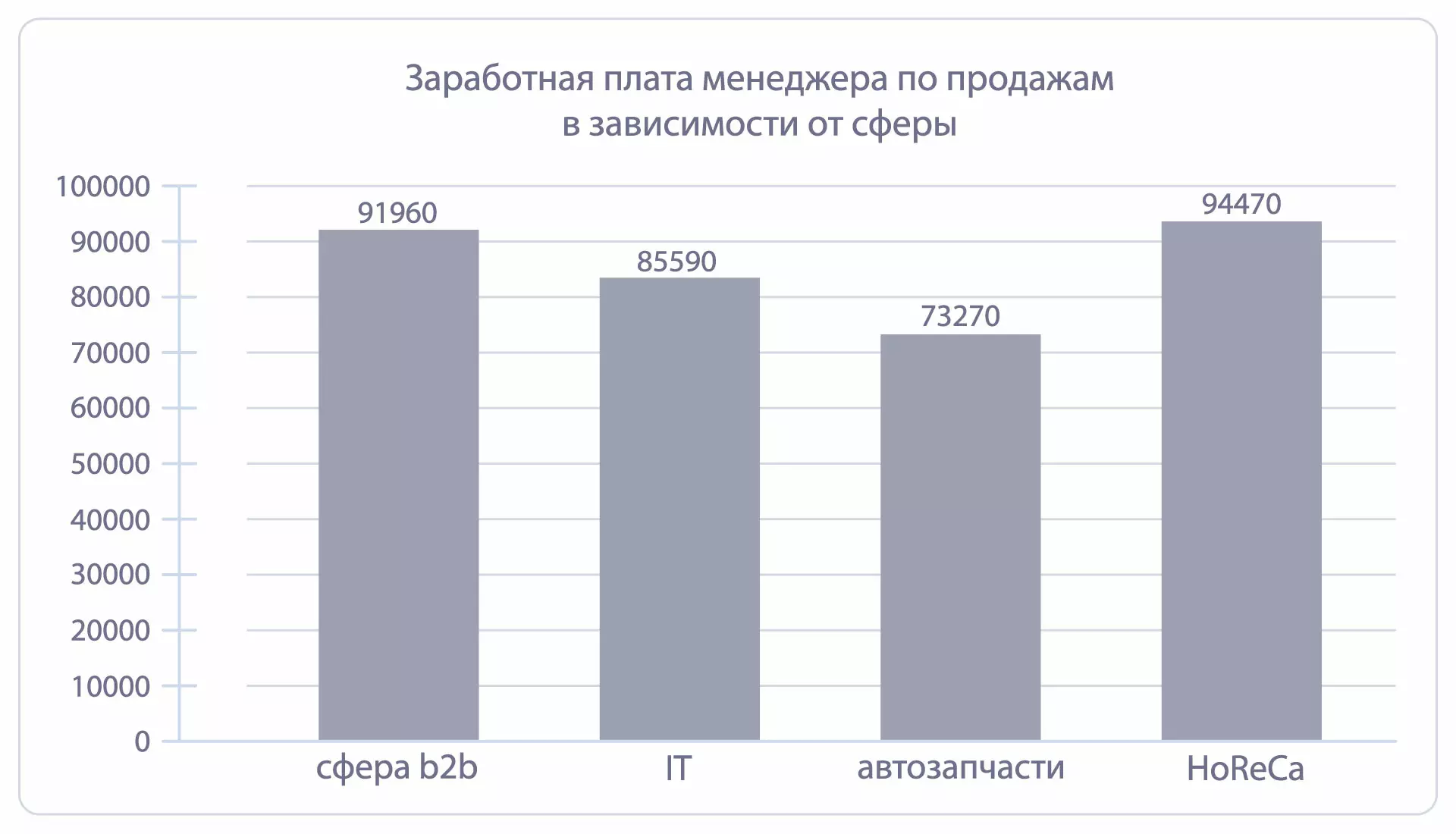 На этом графике показана средняя заработная плата менеджера по продажам в зависимости от сферы: