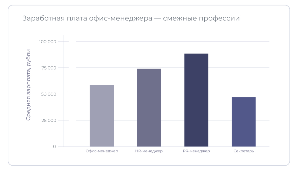 Зарплата офис-менеджера зависит от региона, опыта и объёма задач. Как правило, больше зарабатывают специалисты в IT-компаниях, консалтинге, крупных корпорациях и на производстве.