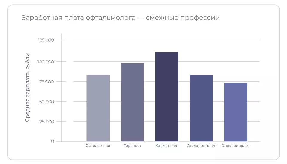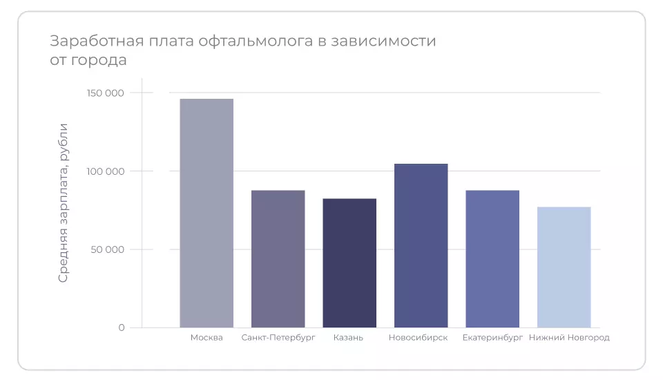 Зарплата офтальмолога зависит от опыта и квалификации врача, места работы и региона России. Чем больше дипломов у окулиста, тем дороже стоит время его работы. Врачи в частных клиниках зарабатывают больше, чем в государственных. Зарплаты окулистов в Москве выше, чем в других городах России.