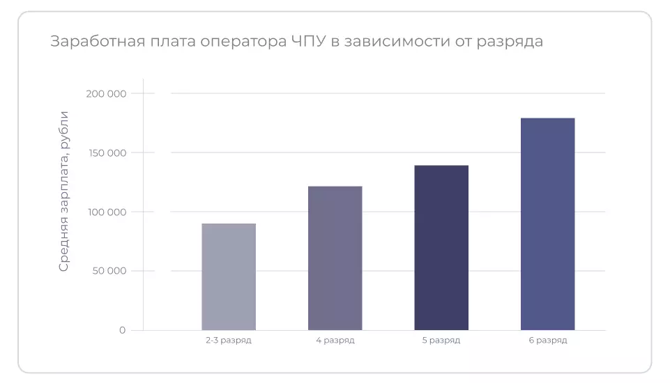 Зарплата сотрудника обычно состоит из оклада и сдельной части. Фиксированный оклад зависит от разряда оператора и сложности работы, которую он выполняет, бюджета завода. В Москве и крупных городах оклады выше, чем в удалённых регионах. Сдельная часть зависит от количества и качества изделий, которые оператор изготовил за месяц, и соблюдения трудовой дисциплины.
