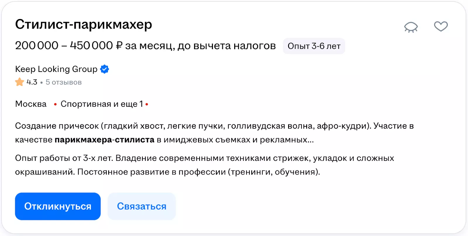 После обучения специалисты обычно устраиваются ассистентами или младшими мастерами. Первый этап занимает от полугода до года: за это время формируется скорость и уверенность. Дальше возможен рост до ведущего мастера, переход в премиальные салоны, работа на проектах или развитие личного бренда.