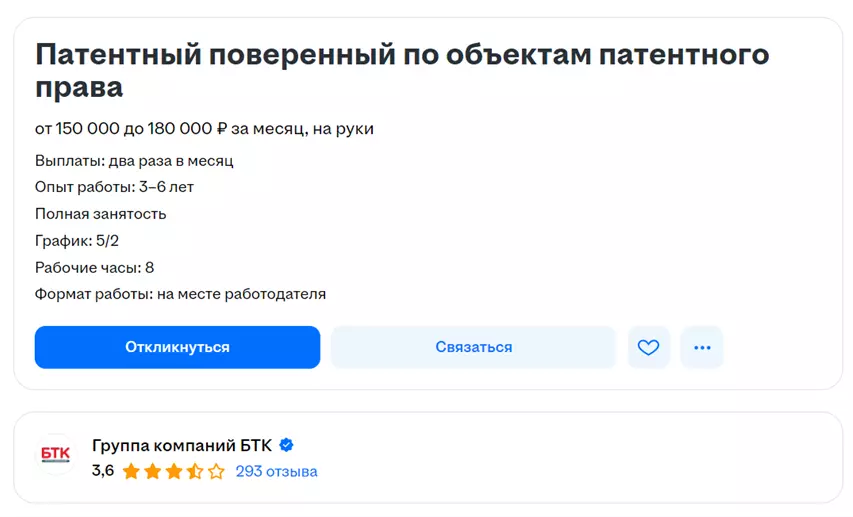 - Коммуникативные навыки для эффективного взаимодействия с клиентами, изобретателями и патентными ведомствами.
