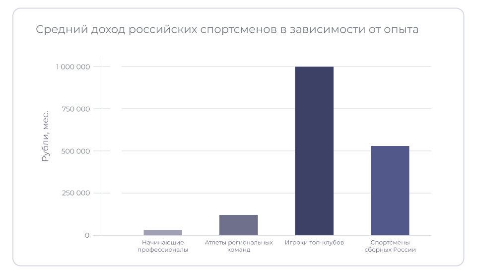 Росстат привёл статистику, согласно которой средняя заработная плата спортсмена в россии составляет 150 000 рублей. Однако разница в доходах между начинающими спортсменами и топовыми представителями сферы может достигать нескольких сотен и даже миллионов рублей.