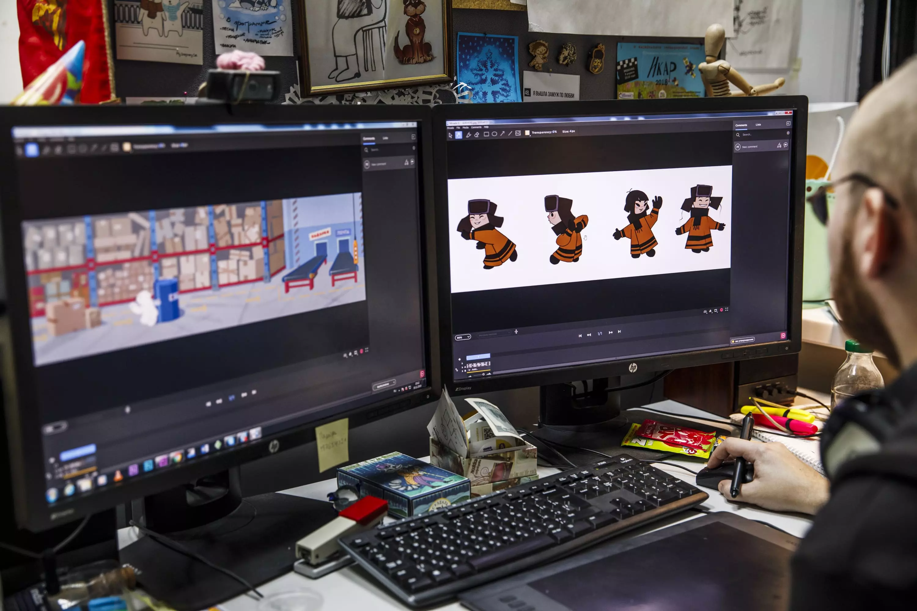 - Команда покадрово прорабатывает движения и мимику объектов и персонажей.