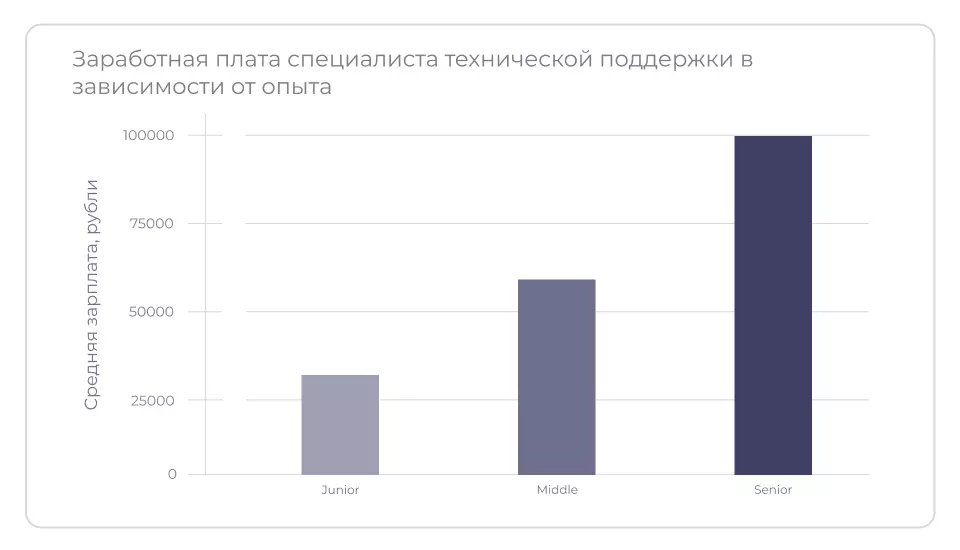 Начинающий специалист техподдержки может дорасти до должности старшего сотрудника и повысить доход. Но чаще профессия становится первым шагом в мир IT. Эксперты набираются опыта, осваивают смежные области и занимают должности администратора, инженера, разработчика.