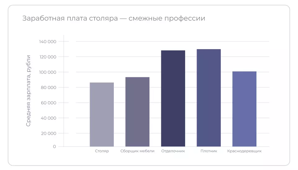Сравним зарплату столяра и специалистов смежных профессий — сборщика мебели, плотника, отделочника и краснодеревщика: