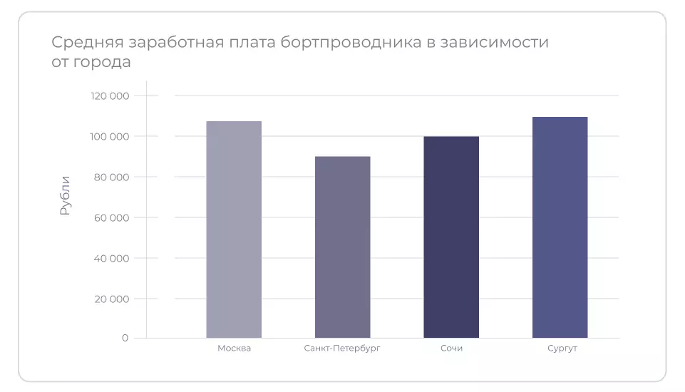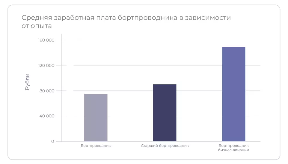 Зарплата стюардессы состоит из оклада, премий и доплат за лётные часы, переработки и суточные (выплачиваются в командировке и покрывают расходы на отель и питание). Средняя зарплата бортпроводника в России на январь 2026 года — 100 000 руб.