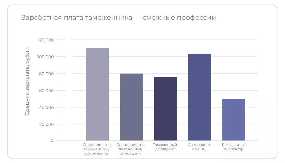 По данным сайта Dream Job, средняя зарплата специалиста по таможенному оформлению в России составляет 110 тыс. руб.