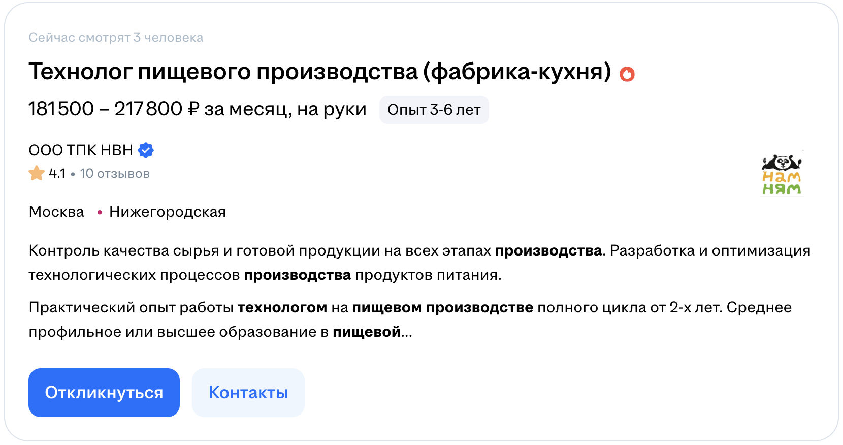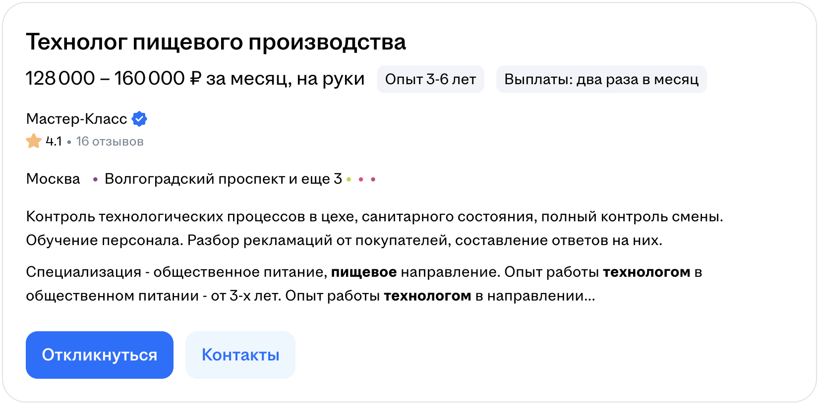 Больше платят специалистам, которые работают на крупных производствах, отвечают за сложные технологические процессы, запуск новой продукции, контроль качества и управление участком или цехом. Подтверждением выступают актуальные вакансии.