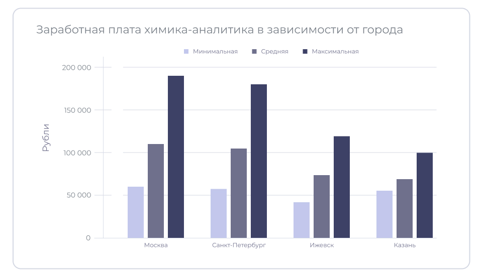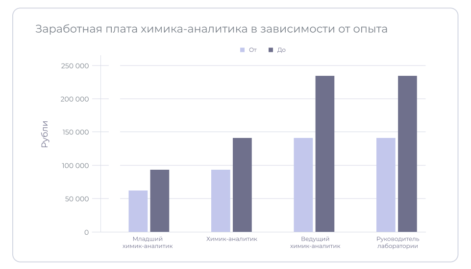 На зарплату также влияет отрасль и регион. В фармацевтике, нефтехимии и крупных производственных лабораториях оплата обычно выше из-за строгих требований к точности анализа и ответственности за результат. В научных организациях доход может быть ниже, но компенсируется возможностью научной карьеры и участия в исследованиях.